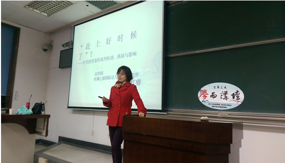 3月25日晚,“春之声”法律文化节系列活动之“学而”论道在主A204开讲,主讲人是法学院讲师陈虹睿博士。她就“赶上好时候了?——中美投资条约谈判机遇、挑战与影响”展开她的研究分享。讲座不仅吸引了我校师生,校外的一些老师、企业家们也前来交流学习。