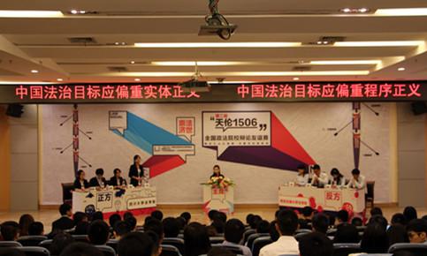 2014年5月24日,乐动网页版法学院辩论队参加在重庆西南政法大学举办的第二届“天伦1506”全国政法院校辩论友谊赛。本次比赛的揭幕战由四川大学法学院辩论队对阵西安交大法学院辩论队,双方就“中国法治目标应偏重实体正义还是程序正义”展开辩论。
