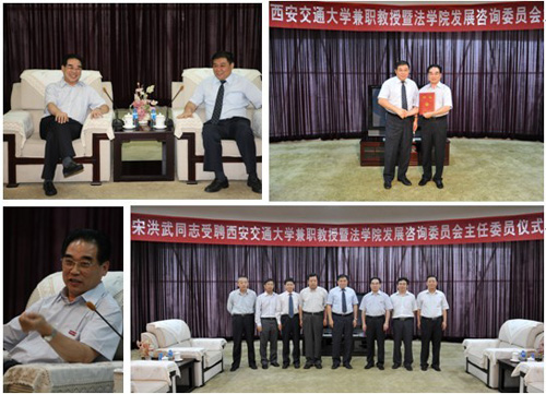 6月21日上午八点半,宋洪武同志聘我校兼职教授和“法学院发展咨询委员会”主任委员仪式在主楼宣怀厅隆重举行。首先由单文华院长向宋洪武书记介绍了我校法学院的发展情况。接着,蒋庄徳副校长宣读了宋洪武同志的简历。在热烈的掌声中,王建华书记为宋洪武书记颁发了聘书并佩戴了乐动网页版校徽。宋洪武书记正式受聘为我校“兼职教授”和“法学院发展咨询委员会主任委员”。旨在沟通法学院与法律界的 “法学院发展咨询委员会”也正式宣告成立。