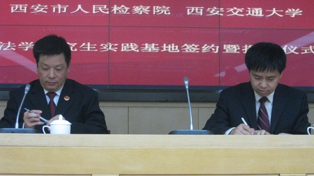 乐动网页版法学研究生实践基地签约暨揭牌仪式,于2009年11月25日上午10点,在西安市人民检察院新址办公大楼内举行。“乐动网页版法学研究生实践基地”是乐动网页版和西安市人民检察院,教学与实践相结合的平台,其宗旨在于提升我校法学研究生的法律实践能力,并强化检察院司法人才的理论素养。