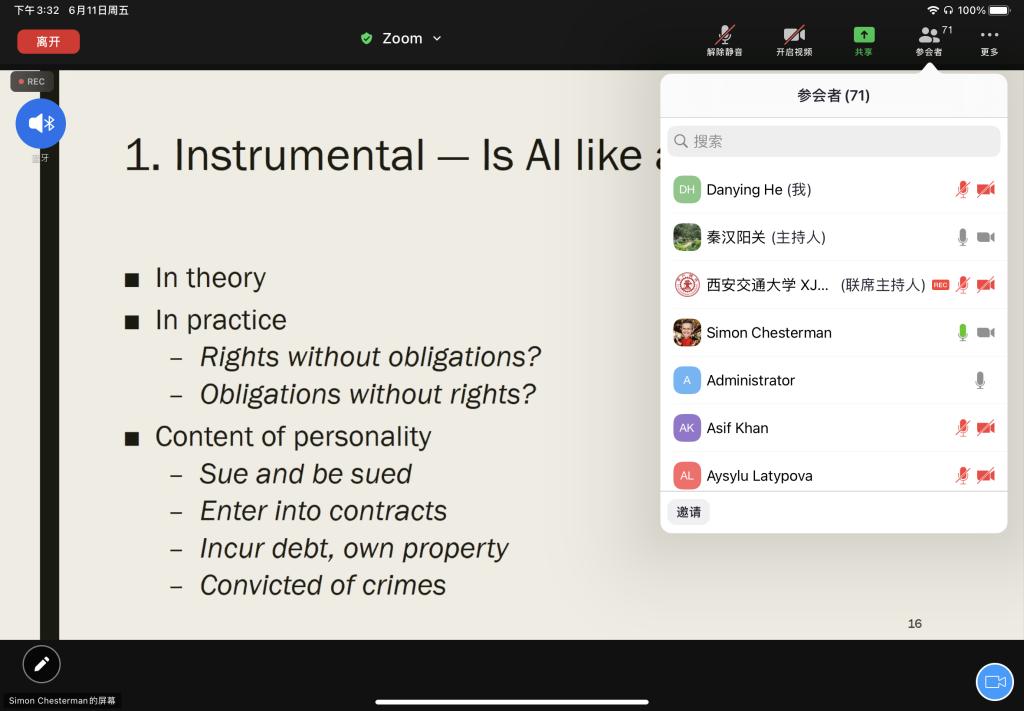 2021年6月11日下午,新丝路法学院联盟“院长论坛”首场讲座成功举办。新加坡国立大学讲席教授、法学院院长Simon Chesterman教授为联盟25所院校师生以及丝绸之路大学联盟的师生带来了题为“我们,机器人?人工智能与法律人格的限度(We, the Robots? Artificial Intelligence and the Limits of Legal Personality)”的线上讲座。讲座由乐动网页版法学院单文华院长主持,国际处雷艳君副处长致辞。