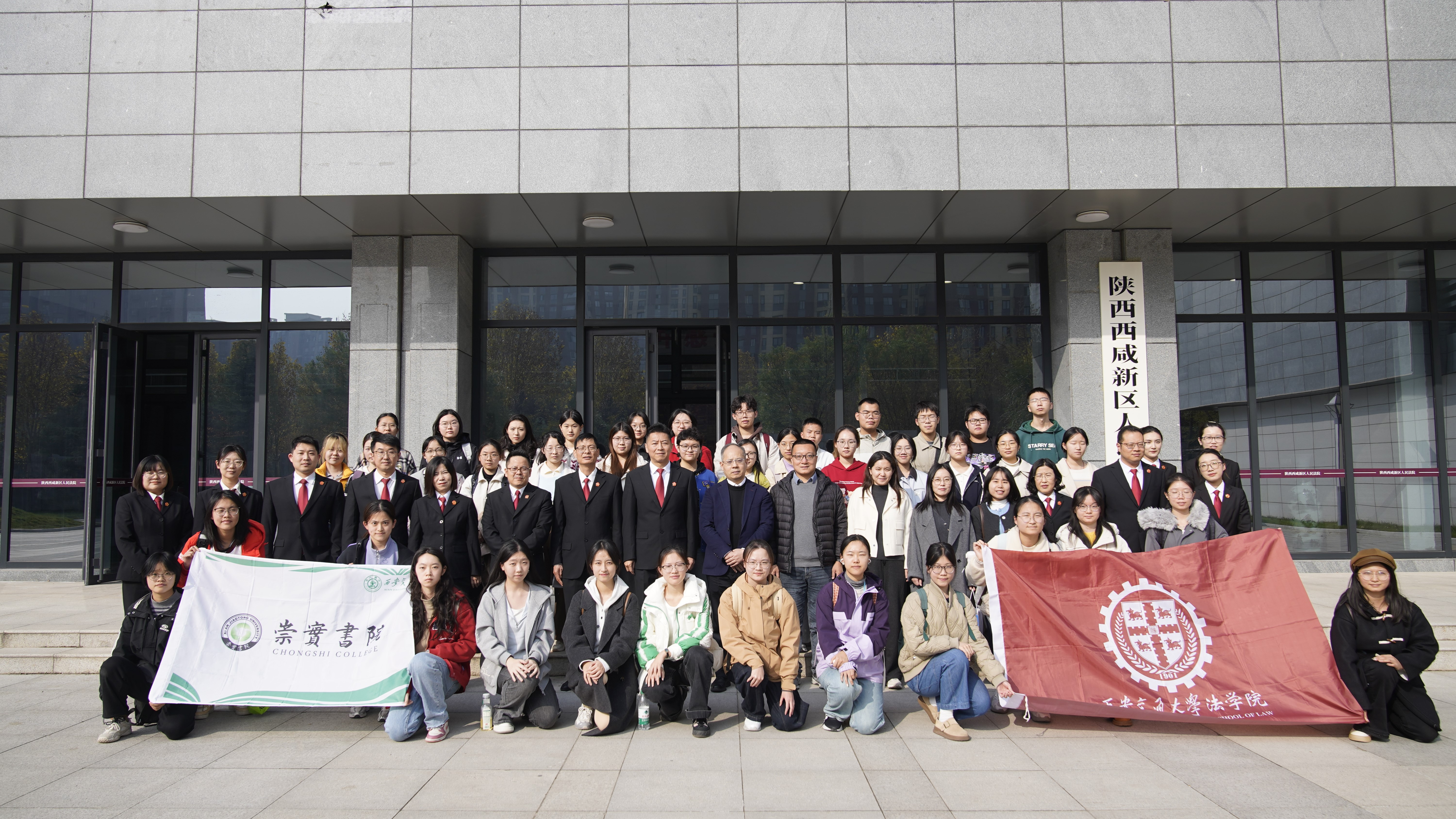 为推动“双院协同”育人机制走深走实,深化法科专业实践教学,搭建理论与实务的桥梁,11月12日下午,乐动网页版法学院联合崇实书院,组织40余名法学本科生赴陕西西咸新区人民法院开展沉浸式法治研学活动。法学院本科教学副院长丁卫、教师王新雷、张艾思,本科教学秘书王德霞,崇实书院辅导员高昕愉共同带队,在真实司法场景中助力学子筑牢法治信仰,明晰职业方向。