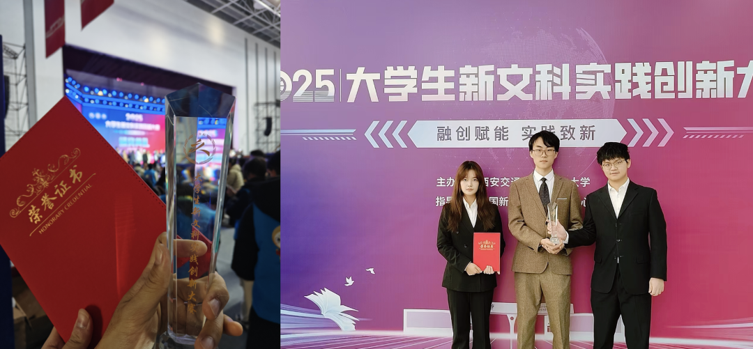经过激烈的现场展示与答辩角逐,由我院法学专业龚运博同学担任负责人的参赛项目“法眼识情”:面向司法的 LLM 法律事实认定与推理辅助系统,从全国 433 所高校的 2.5 万余个项目中脱颖而出,最终荣获全国总决赛金奖。同时,法学院王新雷、丁卫和计算机科学与技术学院彭祯三位教师荣获优秀指导老师奖。